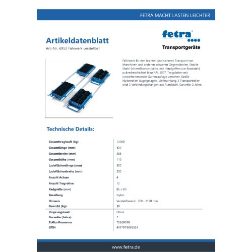 Eigenschaften "FETRA Fahrwerk, verstellbar 6952"