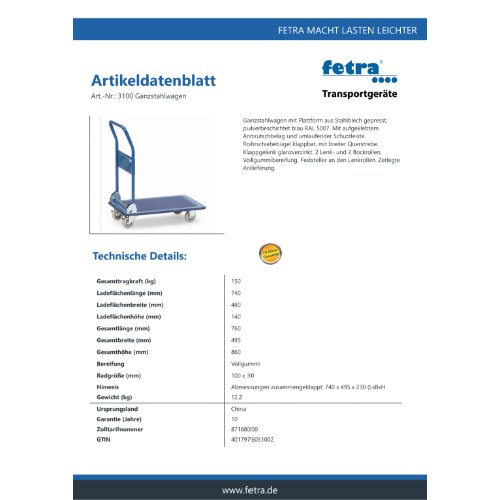Produktinformationen "FETRA Ganzstahlwagen 3100"