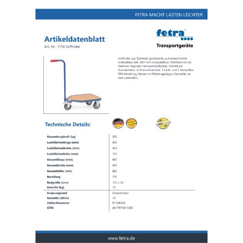| Variante: | FETRA Griffroller 1158 - Holzboden |