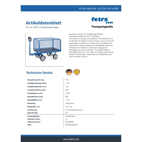 Eigenschaften "FETRA Handpritschenwagen 6433V"
