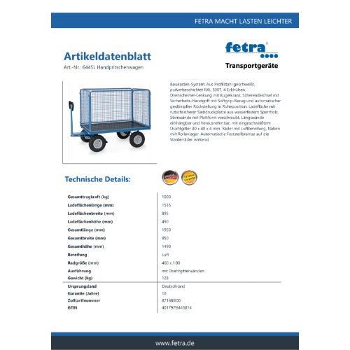Eigenschaften "FETRA Handpritschenwagen 6445L"