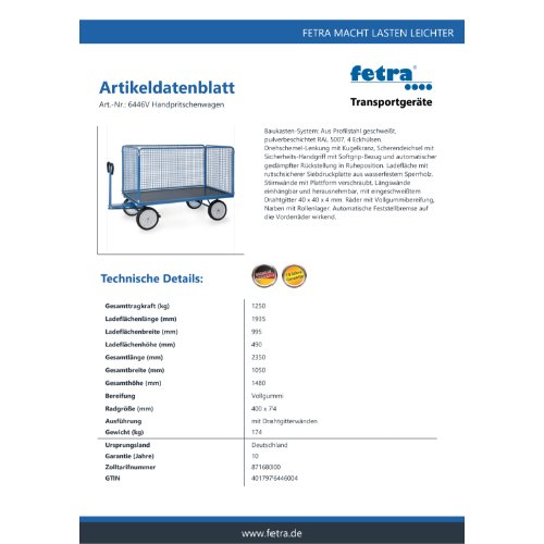 Eigenschaften "FETRA Handpritschenwagen 6446V"