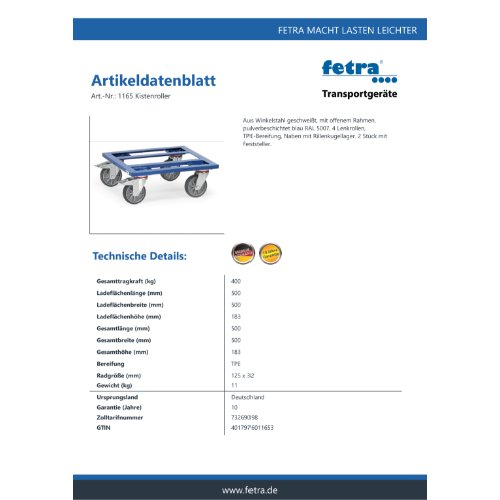| Variante: | FETRA Kistenroller 1165 - offener Rahmen |