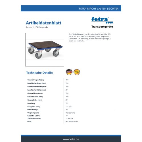 | Variante: | FETRA Kistenroller 2174 - Riefengummi |