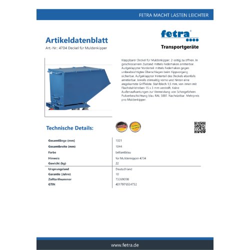 | Variante: | FETRA Klappbarer Deckel 2-seitig öffenbar, 47D4 |