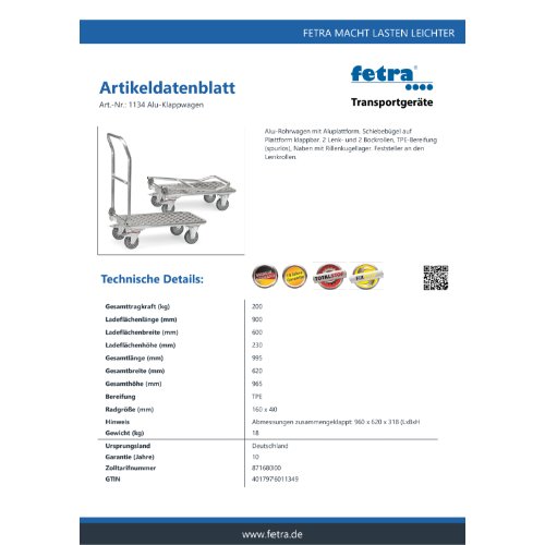 Eigenschaften "FETRA Klappwagen 1134 -ALU-"