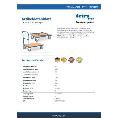 Eigenschaften "FETRA Klappwagen 2502-K"