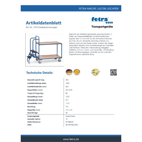 Eigenschaften "FETRA Kommissionierwagen 2105"