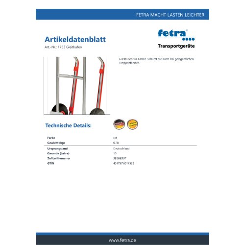 Eigenschaften "FETRA Kunststoff-Gleitkufen für Karren, 1753"