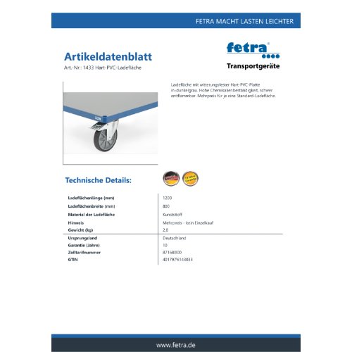 Eigenschaften "FETRA Ladefläche mit Hart-PVC-Platte - Mehrpreis -, 1433"