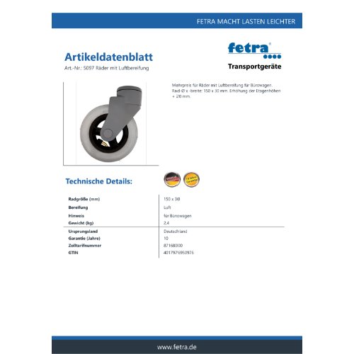 Produktinformationen "FETRA Luftbereifung - Mehrpreis -, 5097"