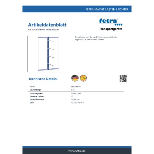 Eigenschaften "FETRA Mittelpfosten für Tragarmwagen - Zubehör -, E4614MP"
