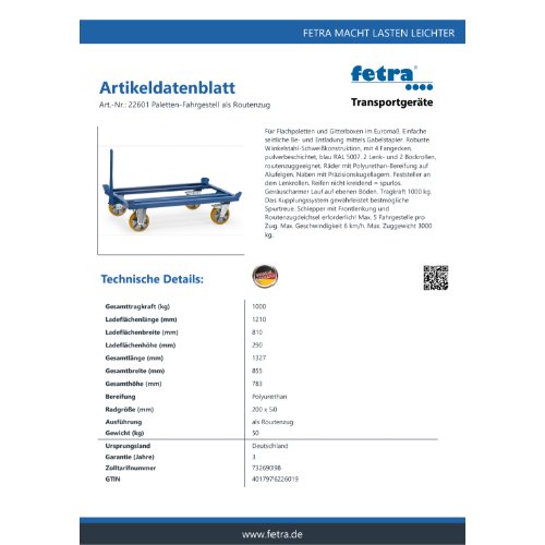 Eigenschaften "FETRA Paletten-Fahrgestell 22601 - als Routenzug"