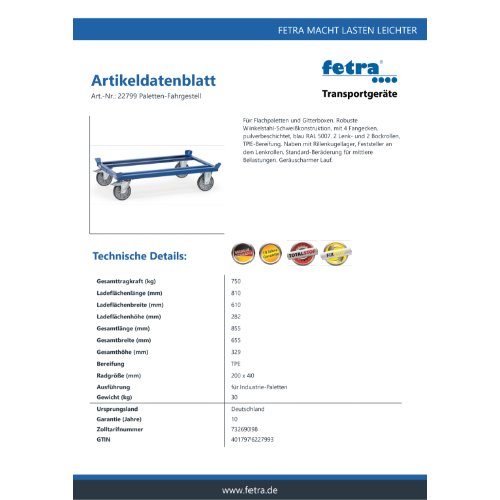 Eigenschaften "FETRA Paletten-Fahrgestell 22799 - TPE"