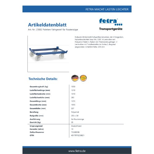 Eigenschaften "FETRA Paletten-Fahrgestell 23882"