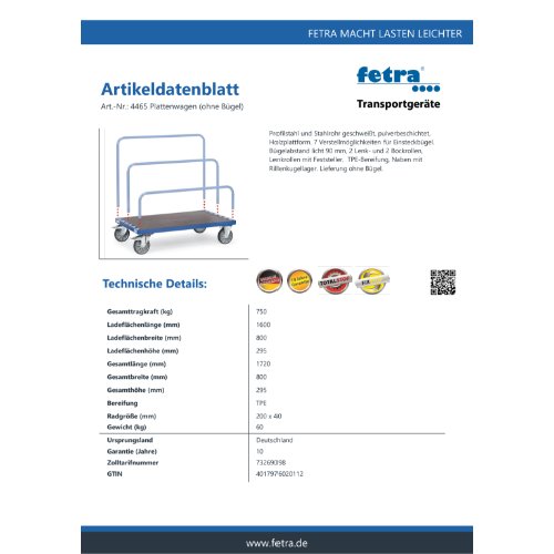 Eigenschaften "FETRA Plattenwagen 4465 - ohne Bügel"