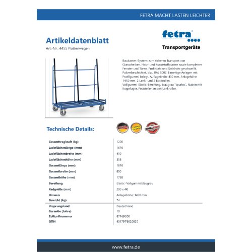 Produktinformationen "FETRA Plattenwagen 4455 -Anlage einseitig"