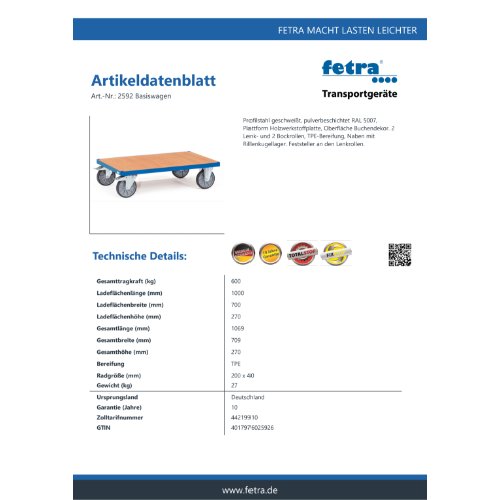 Produktinformationen "FETRA Plattformwagen 2592"