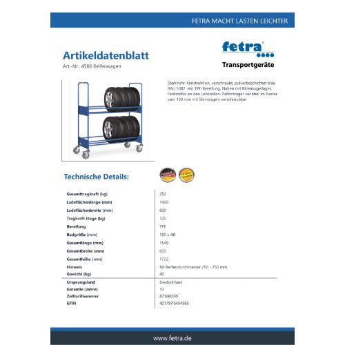 | Hinweis: | für Reifendurchmesser 250 - 750 mm |