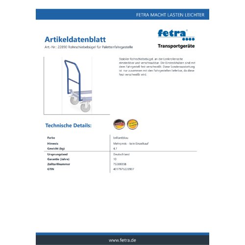 Eigenschaften "FETRA Rohrschiebebügel - Mehrpreis -, 22890"