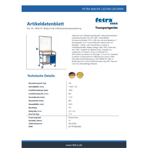 Eigenschaften "FETRA Rollpult 5838 mit Infektionsschutzausstattung, 5838-IS1"