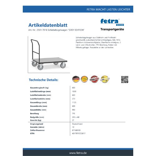 Produktinformationen "FETRA Schiebebügelwagen 2501-7016"