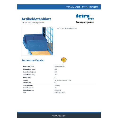 Eigenschaften "FETRA Sichtlagerkasten 300 x 230 x 150 mm - Zubehör -, 1307"