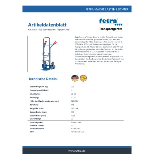 Eigenschaften "FETRA Stahlflaschen-Treppenkarre 51325"