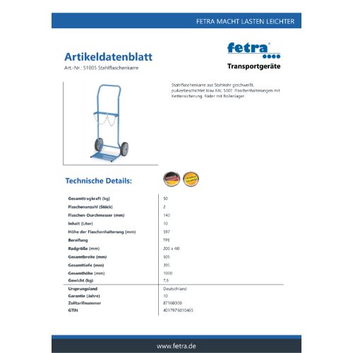 Eigenschaften "FETRA Stahlflaschenkarre 51005"