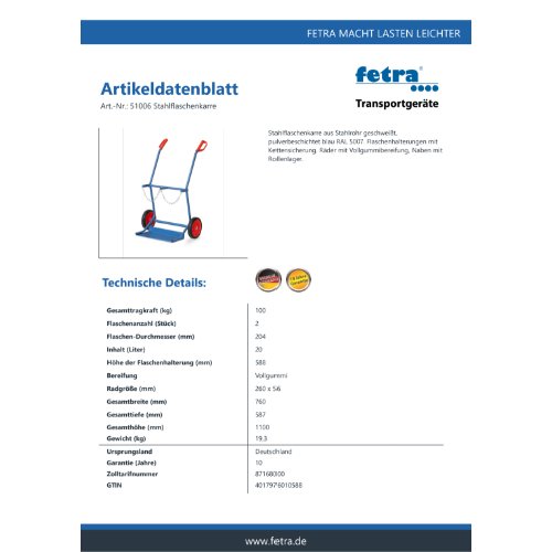 Eigenschaften "FETRA Stahlflaschenkarre 51006"