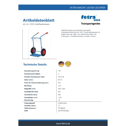 Eigenschaften "FETRA Stahlflaschenkarre 51012"