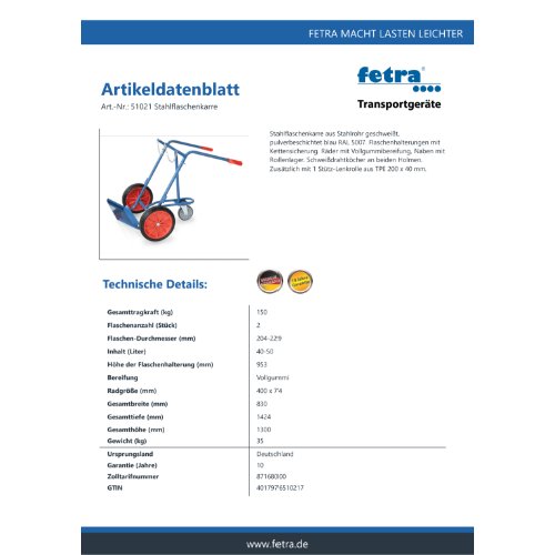 Eigenschaften "FETRA Stahlflaschenkarre 51021"