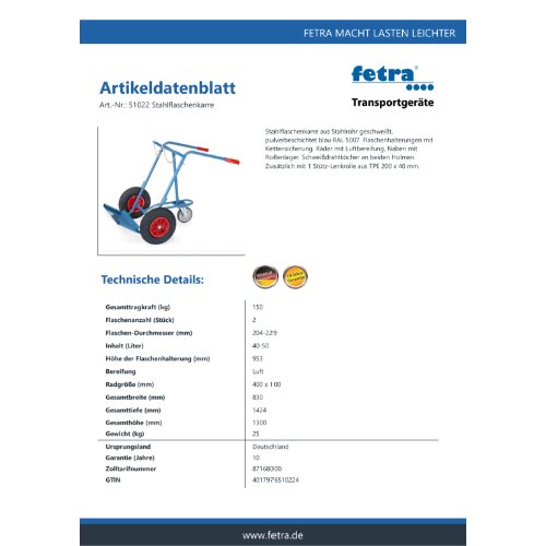 Eigenschaften "FETRA Stahlflaschenkarre 51022"