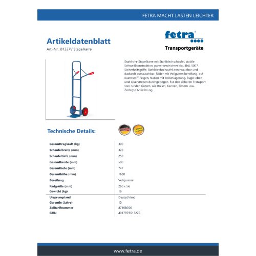 Eigenschaften "FETRA Stapelkarre B1327V"