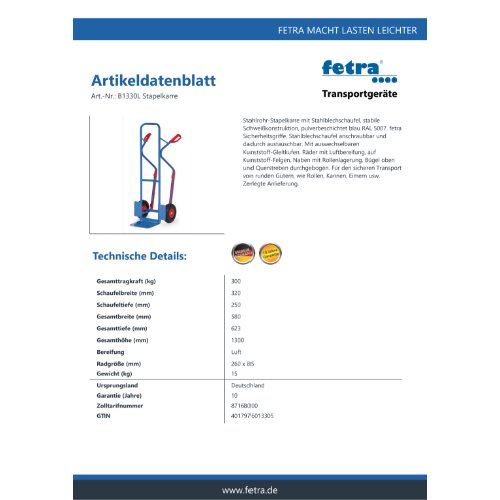Eigenschaften "FETRA Stapelkarre B1330L"