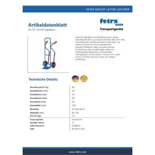Eigenschaften "FETRA Stapelkarre B1330P"