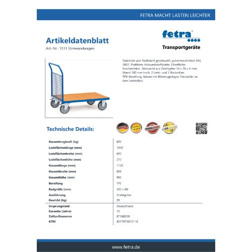 Produktinformationen "FETRA Stirnwandwagen 1511"