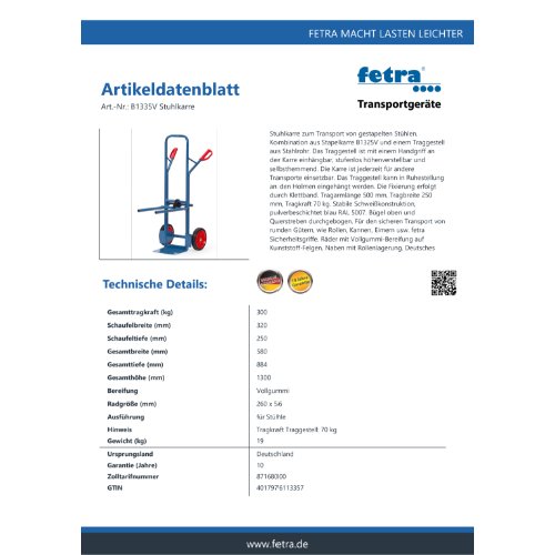 Eigenschaften "FETRA Stuhlkarre B1335V"