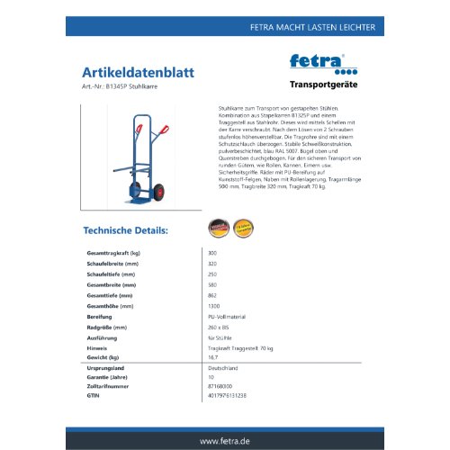 Eigenschaften "FETRA Stuhlkarre B1345P"