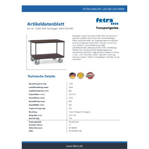 Eigenschaften "FETRA Tischwagen 12406-7016"
