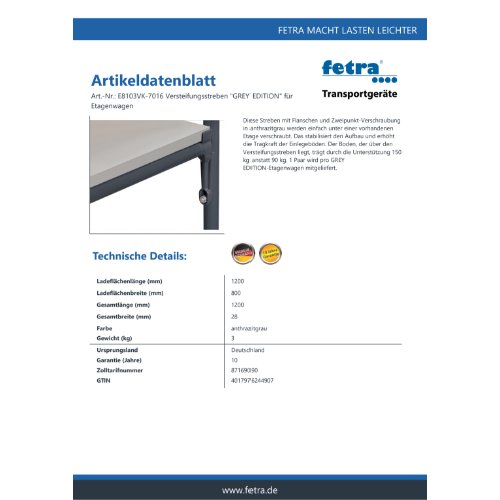 | Variante: | FETRA Versteifungsstreben für Etagenwagen 1.200 mm lang, E8103VK-7016 |