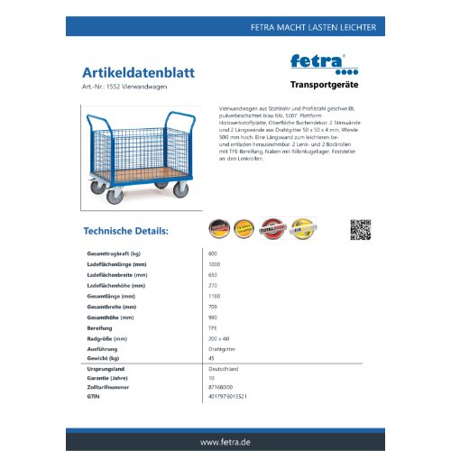 Produktinformationen "FETRA Vierwandwagen 1552"
