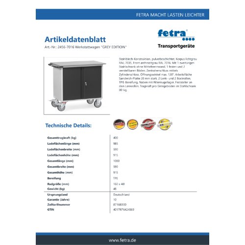 Eigenschaften "FETRA Werkstattwagen 2456-7016"