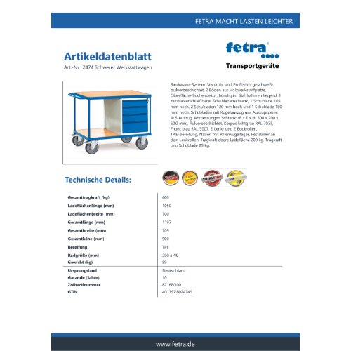 Produktinformationen "FETRA Werkstattwagen 2474"
