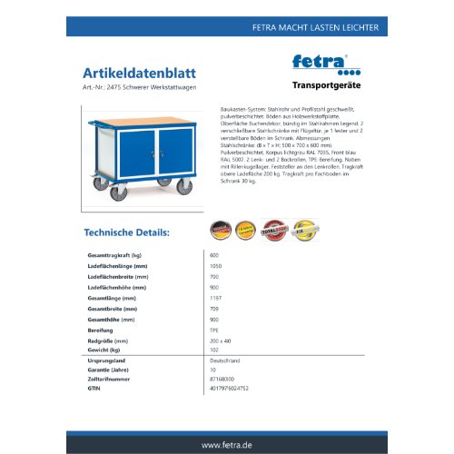 Produktinformationen "FETRA Werkstattwagen 2475"