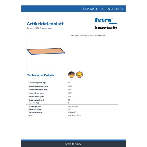 Eigenschaften "FETRA Zusatzboden für Montagewagen 2891+2892 - Zubehör -, 2898"