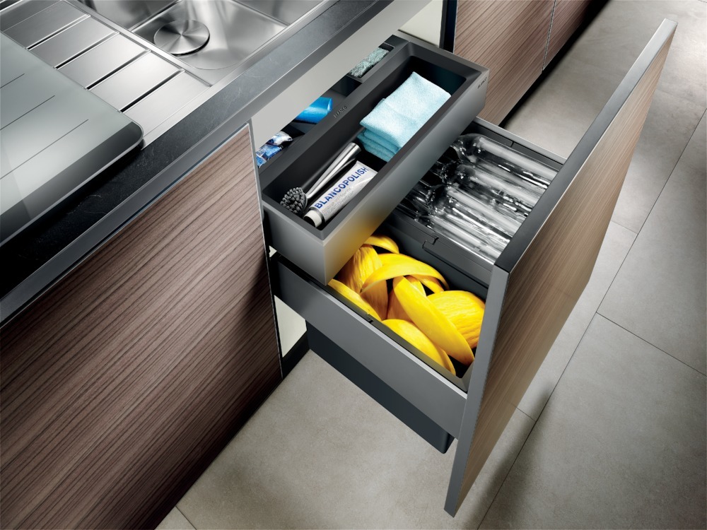 FORMAT Einbauabfallsammler Select Orga 518725; Montage: Seitenwände; Werkstoff Eimer und Deckel: Kunststoff; Ausführung: mit Systemdeckel; Deckel: herausfahrbarer Systemdeckel; Einsatzbereich: Küchen; Fassungsvermögen: 49 l; Setinhalt (Eimer): 2 St.; Basis: Einbauabfallsammler; Korpustiefe: 450 mm; Anwendung: für Korpus mit Frontauszug; Inhalt Eimer: 1 x 30 + 1 x 19 l; Farbton: alugrau; Form: eckig; Einbautiefe: 400 mm; Einbauhöhe: 473 mm; Einbaubreite: 562/568 mm; Korpusbreite: 600 mm; Seitenwandstärke min.: 16 mm; Seitenwandstärke max.: 19 mm
