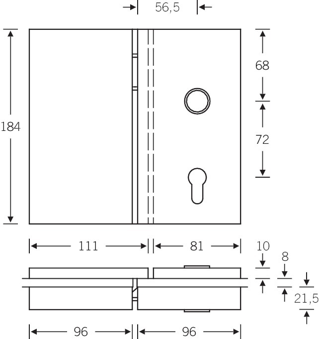 Eigenschaften "FSB Ganzglastürschloss 13 4220,PZ,8-10mm,DR,ER,FlüFA,mit Wechsel"