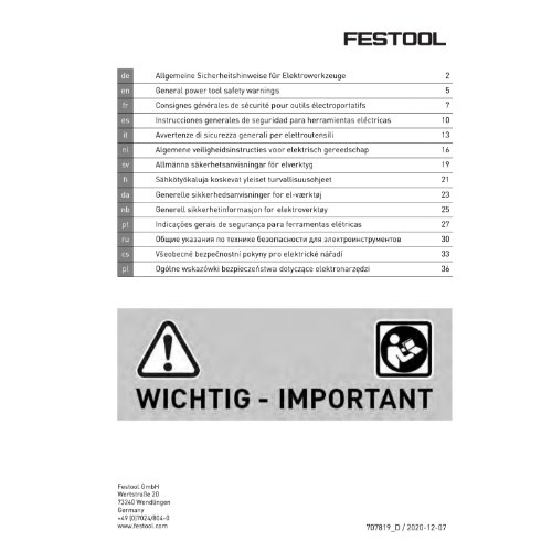 Hersteller: Festool GmbH, Wertstraße 20, D-73240 Wendlingen a. N.