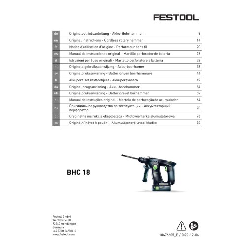 | Variante: | Festool Akku-Bohrhammer BHC 18 HPC 4,0 I-Plus |